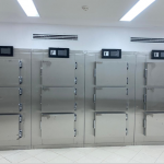 The two units and all functioning of the mortuary refrigerator is being managed by a touch screen microprocessor control system. The control system has a data recording system and Ethernet through. Which, you can connect it to the BMS, all required alarms are included in our new system. The system can also be connected to the local network or internet and all alarms and functions of the unit can be controlled through remotely.