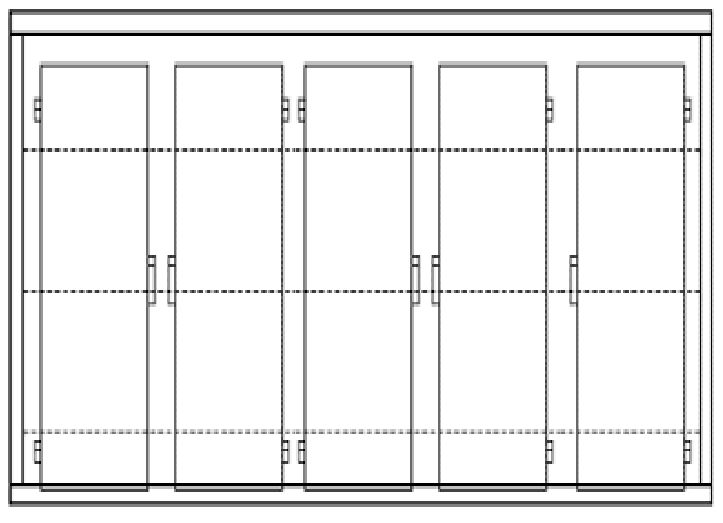 Door: 5 separate compartment door, dimensions WxH = 800 x 2000 mm, chromed fittings and key lock. The door can be opened with approx. 180° . Optional: can install the unit with floor level finish, there will be no need for the ramp, and the trolley can drive-in directly.