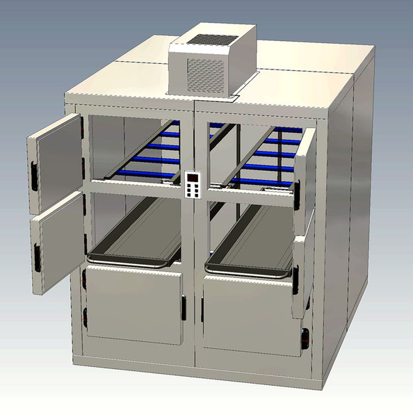 microprocessor controller. As per customer’s requirement Thalheimer can design and produce Mortuary refrigeration and freezing systems with double cooling system that can be mounted on top, on side, or remotely in a machine room or anywhere. The cooling system includes auto switchover. The calculation of cooling capacity for each unit is designed to perform at a maximum ambient temperature.