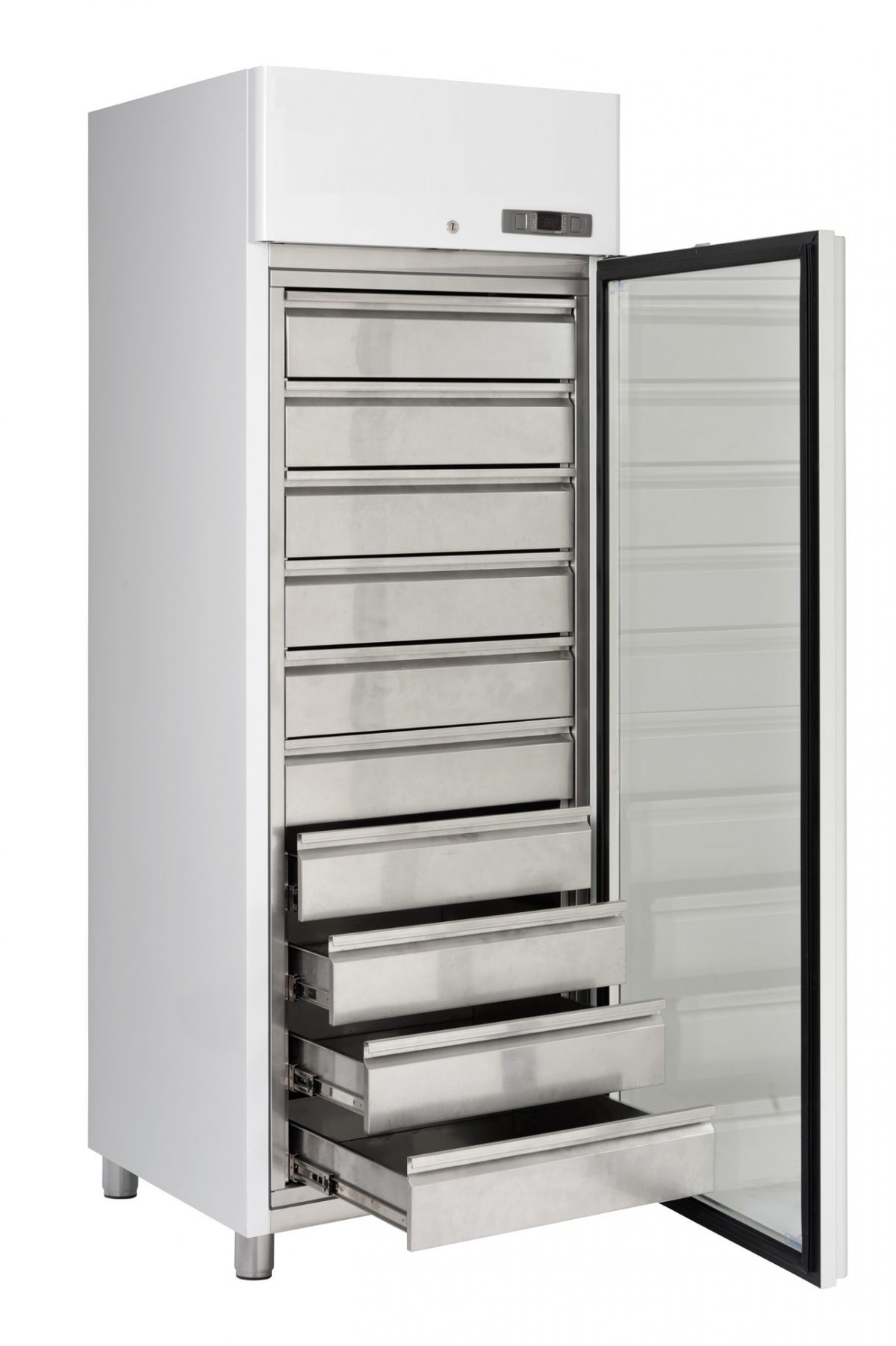– Shelves: Solid stainless steel shelves are standard with the possibility to offer wired shelves and drawers